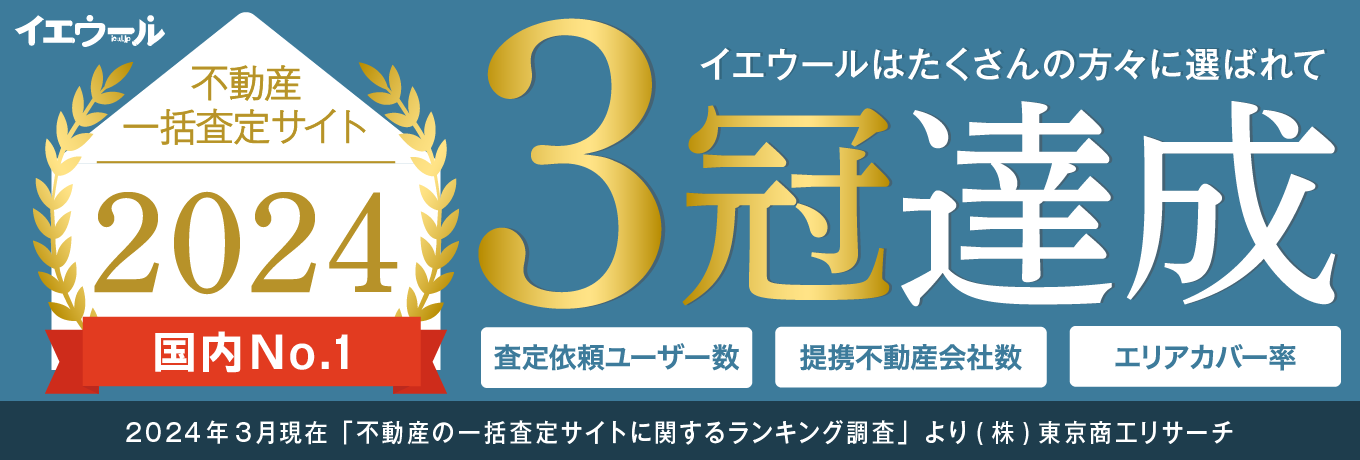 イエウールは2024年3月、東京商工リサーチ社による「不動産の一括査定サイトに関するランキング調査」において、 「査定依頼ユーザー数」「提携不動産会社数」「エリアカバー率」の3部門で1位を獲得しました。