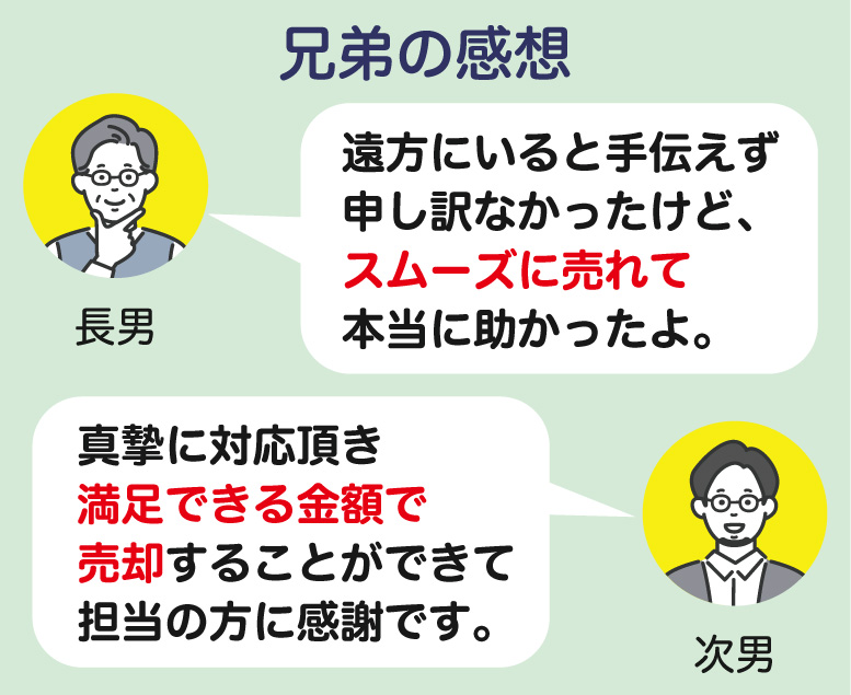 選んだ不動産業者が実家の売却活動を進め、数か月後には購入希望者が現れ、契約まで至りました。